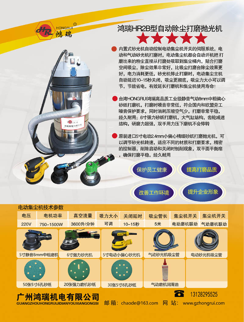 1、电动和气动砂光机打磨时都会自动控制电动集尘主机开机吸尘,把打磨出来的粉尘吸取到集尘桶内,没有粉尘飞散,确保工作环境清洁和操作人员的身体健康