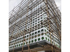 门头圆孔包边铝板由面板,加强筋,挂耳等部件组成,有要求时可在背面填充无纺布或者棉层,挂耳可直接由面板折弯而成,也可以在面板上另外通过烧焊加装,在面板背面有螺旋,通过螺旋把加强筋和面板连接起来,形成一个牢固的整体,加强筋起到增加单层幕墙铝单板,保证了铝单板在长期使用的抗风压和平整,使得铝单板的使用寿命长。