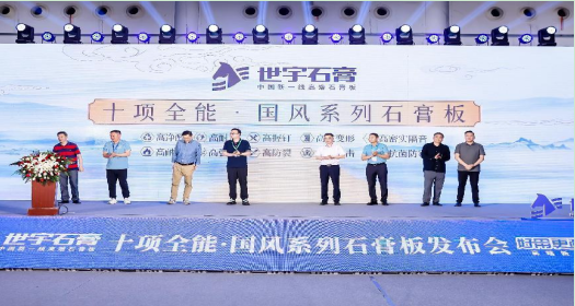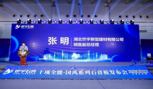世宇建材品牌总监赵宝进行了《世宇十项全能·国风系列石膏板新品发布》主题分享,正式揭开新品石膏板的神秘面纱。