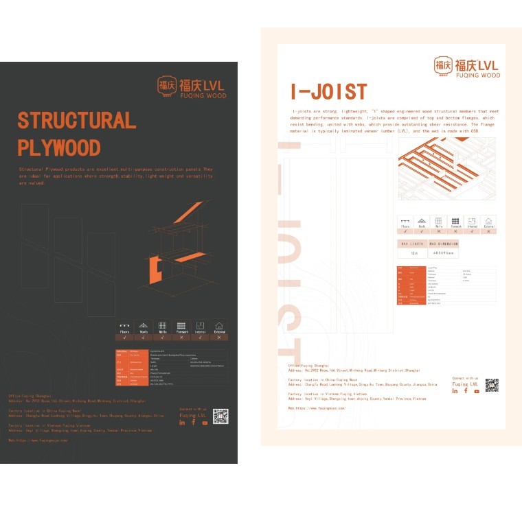 此外,福庆的构造胶合板与工字梁同样表现出色。构造胶合板凭借其出色的防水、防潮性能,成为建筑外墙、屋顶等关键部位的理想材料;而工字梁则以其独特的学设计,确保了大型木结构工程的稳固与安全。