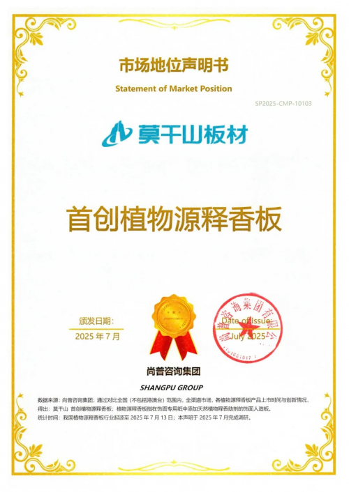 在行业创新维度,莫干山是全国首个推出在饰面专用纸中添加天然植物释香助剂释香板的品牌,实现了开云球赛创新;