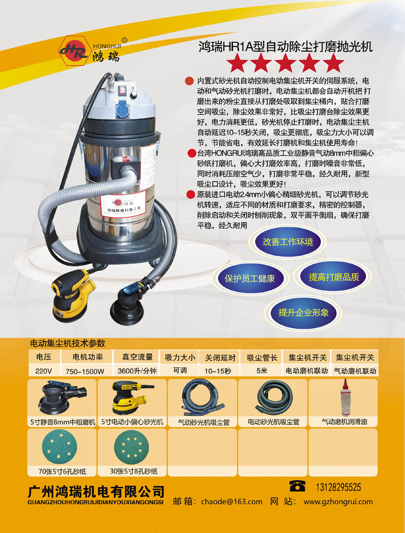 1、电动和气动砂光机打磨时都会自动控制电动集尘主机开机吸尘,把打磨出来的粉尘吸取到集尘桶内,没有粉尘飞散,确保工作环境清洁和操作人员的身体健康
