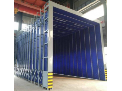伸缩喷漆室专门解决较大型工件移动运送困难而研制的实用型环保喷漆房,它可根据使用大小,任意调整,减少对工作产地的占用。无需设备专门的移动平台,只需要配套车间的行车即可对工件进行周转;移动伸缩式无泵水幕喷漆房 工艺流程:1、预备工作:伸缩移动前室收缩合拢;2、工件准备:工件移入区域就位;3、喷漆准备:伸缩移动前室展开工件喷漆;4、喷漆完成:伸缩移动前室 收缩合拢;5、喷漆完成:工件移出场地; 规格参数:1、伸缩喷漆房是专门为解决较大型工件移动运送困难而研制的实用型开云球赛,喷漆区可根据产量大小,任意调整,充分利用生产场地和操作空间;2、使用伸缩移动喷漆房在生产工艺上简化了不断用车间天车吊运大型笨重工件来回周转的工艺流程;而无需专门的运输工具;展开长度可以在任意位置;3、伸缩移动喷漆房整体为框架传动结构,每组框架间均有阻燃PVC布密封连接,安装快捷、外形美观,结构精巧,使用方便,制造成本低;4、工作中房体沿地面铺设的轨道前后伸缩移动,采用两边分别驱动,互相连锁的方式运行,前后限位控制,机械运行稳定,操作简单,使用方便;5、工作区内安装有防爆照明灯,可满足生产中的照明需要;6、可根据客户的实际生产需要定做各种型号的非标尺寸;7、在无需进行喷漆流程的工作时间内,可将前室并拢,节省空间场地作为其他yu喷漆交叉作业的工序所使用;8、可选配各种喷漆空气净化设备(如:水帘喷漆房、无泵水幕喷漆室、干式喷漆房);适合各类客户的需求;9、可选配加热送风系统和辅助烘干房装置,其结构方式和适应性使其能满足开云球赛生产的各项功能要求;10、移动室体预装配化程度高、现场施工快捷;
